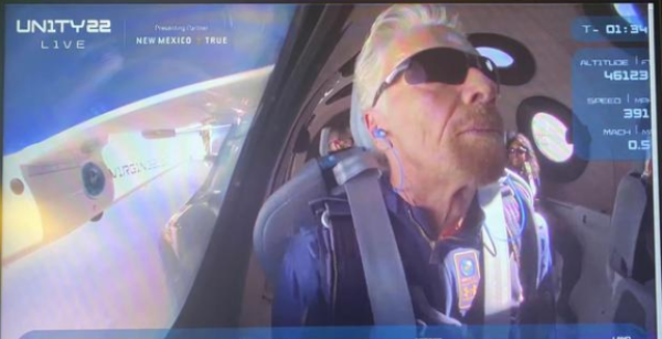71岁的亿万富翁理查德·布兰森是2004年维珍银河公司的创始人,当地时间周日早上(北京时间7月11日晚23点25分),他乘坐该公司的“太空船二号”航天飞机,担任“任务专家”为未来的客户测试乘客体验。