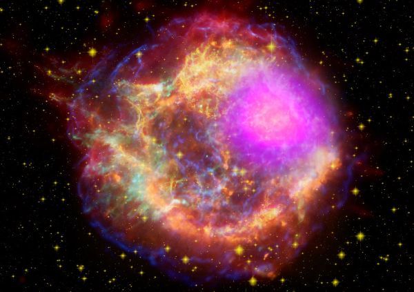 另一种解释指向被称为超新星的恒星爆炸。当大型恒星耗尽燃料并在这些猛烈的超新星中爆发时,它们可以将附近的粒子以接近光速的速度喷射出去。这些被称为宇宙射线的高能粒子可能会与散布在恒星之间的气体腹地的其他粒子发生碰撞,产生伽马射线。