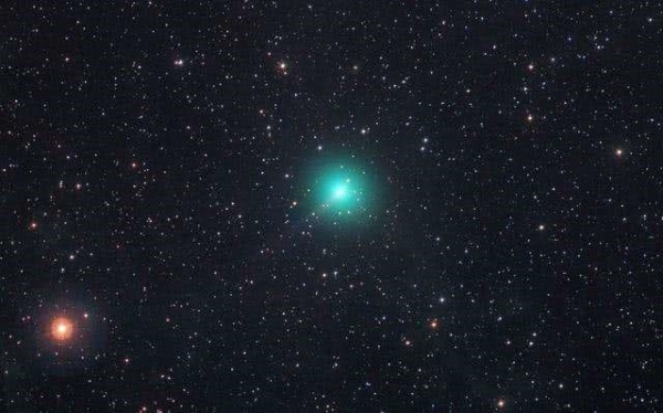 彩色图像显示这颗正式命名为 C/2021 A1 的彗星有延长的尾巴,但也捕捉到了太空现象,包括在彗星下方看到的流星、两颗卫星的较短轨迹、气辉和极光。