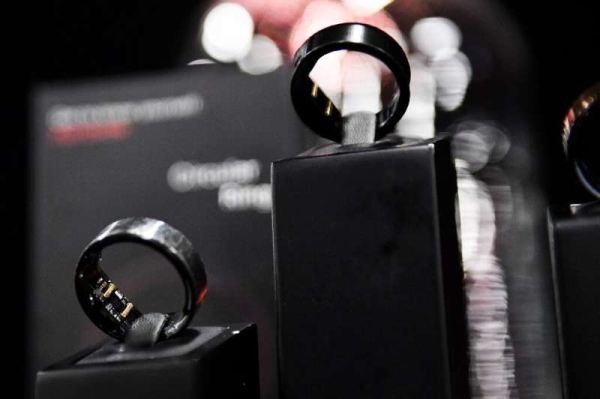 在2022年美国拉斯维加斯消费电子展(CES)上展出的一枚闪闪发光的戒指,但这不仅仅是一件珠宝——它装有能够检测体温、呼吸和其他更多功能的传感器。