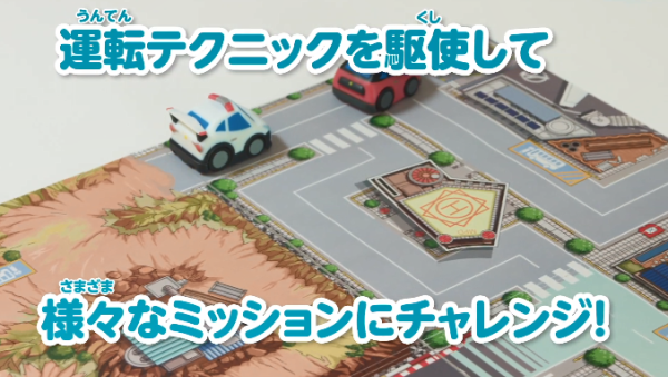索尼创意机器人玩具《toio》最新应用中,方头方脑的小机器人化身成为迷你小汽车,玩家可以使用组件圆环当作方向盘,直接控制小车行走于各种地图之间,赛车、拖车、角斗等等玩法多样,根本停不下来。