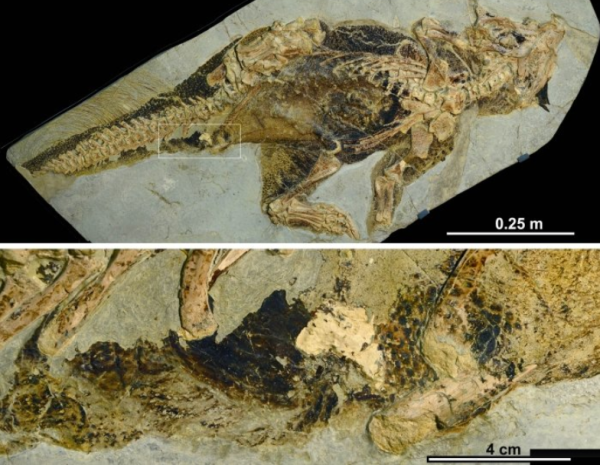 “几年前我注意到泄殖腔的时候,是在我们在德国森肯伯格博物馆用化石复原了这只恐龙的皮肤和颜色模式后发现的。”英国布里斯托大学的古生物学家Jakob Vinther去年解释过。