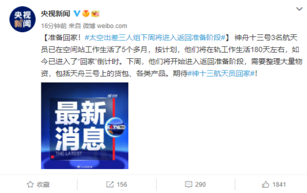 今日,据@央视新闻 消息,神舟十三号3名航天员已在空间站工作生活了5个多月,按计划,他们将在轨工作生活180天左右,如今已进入了“回家”倒计时。