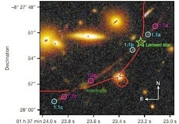 研究人员利用引力透镜——即遥远物体被较近物体放大的现象,揭示出这个星体可能是一个单星或双星系统。