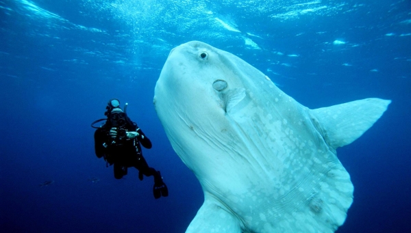 拍摄到这条翻车鱼的是当地一家潜水店的店员,他表示,能和客人以及工作人员们一同见到这条翻车鱼,真的很幸运。