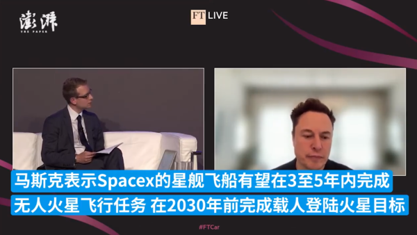 据媒体报道,当地时间5月10日,在《金融时报》未来汽车峰会的讲话中,马斯克谈及了SpaceX登陆火星的计划。