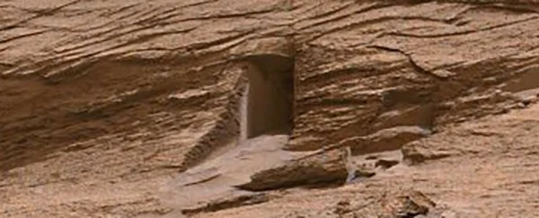 NASA好奇号火星车近日传回的一张照片震惊了世人:火星表面岩石上,赫然出现了一道近乎完美的“门”,还有“门廊”。