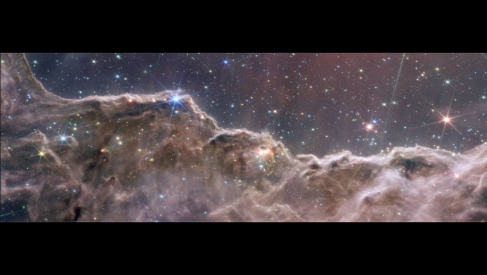 * 詹姆斯·韦伯太空望远镜拍摄的船底星云“宇宙悬崖”的近红外图像