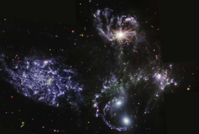 * 詹姆斯·韦伯太空望远镜的中红外探测器拍摄的斯蒂芬星系五重奏