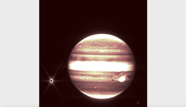 * 通过詹姆斯·韦伯太空望远镜的NIRCam 3.23微米滤光片可以看到木星和它的一些卫星 | 图片来源:NASA, ESA, CSA