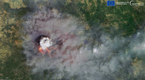 卫星还捕捉到了法国西南部波尔多市附近著名的葡萄酒种植区野火造成的破坏。7月12日发生的两起火灾烧毁了该地区超过100平方公里的土地。据哥白尼应急管理局称,葡萄牙、希腊和土耳其也发布了极端火灾危险警报。