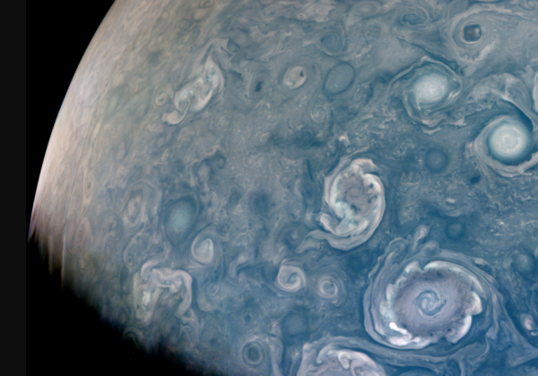 最近,美国国家航空航天局的“朱诺号”探测器在近距离接近木星时拍摄到了木星北极附近的强大风暴,这是一幅令人惊叹的新照片。