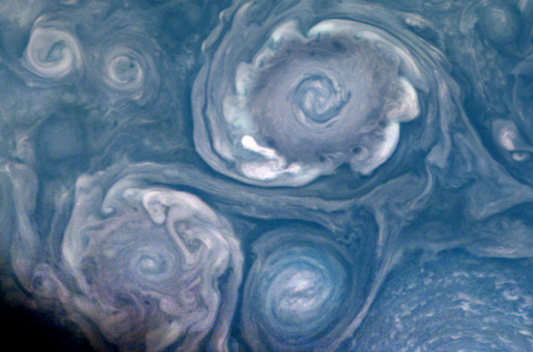 美国宇航局在一份声明中说,风暴在木星动荡的大气层中深度超过30英里(50公里),宽度达数百英里。科学家们正在研究这些风暴,以了解是什么推动了它们的形成。