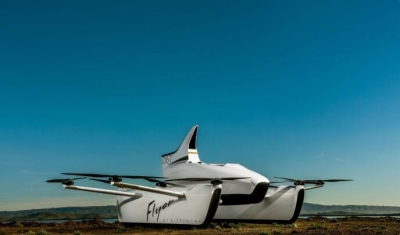 Flyer是一种亮白色的空中三体船。飞行员乘坐的中间吊仓有点像F1赛车的座舱。两侧是一对驳船,以便可以水陆两用,侧面伸出了两根梁连接吊舱。这种飞车是单座的,配置了10个螺旋桨,长13英尺,宽7.5英尺,高5英尺。得益于碳纤维结构,这种飞行器的重量只有250磅。它是电动的,所以出奇的安静。起飞降落和飞行都跟直升飞机很像。