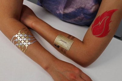 许多人将智能纹身的诞生追溯到2011年。当时美国西北大学(Northwestern University)材料研究员兼生物工程师John Rogers在《科学》(Science)杂志上描述了他的“表皮电子系统”。他的团队将电极、电子设备、传感器、电源和通信组件做成一层可伸缩的超薄硅基薄膜,这种薄膜可以附着在皮肤上,就像暂时性纹身一样。