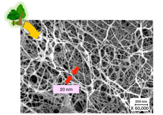 “纳米纤维素纤维”也有人称之为“纤维素纳米纤维”(Celluouse Nanofibers,CNF),是将纤维素(Celluouse)这种构成植物细胞壁的主要成分进行纳米化(超微细化)处理后制成。
