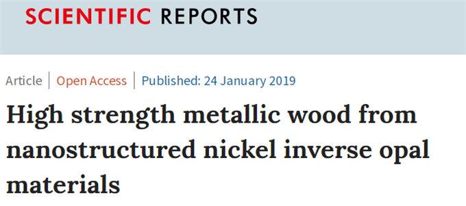 不仅如此,宾夕法尼亚大学、伊利诺伊大学厄巴纳-香槟分校和剑桥大学的研究人员最近发表于《科学报告》(Scientific Reports)杂志上的一项研究表明,他们也发明了一种超轻量级材料,叫做“金属木材”,强度和钛一样,但重量轻,可以漂浮在水中。