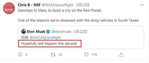 当地时间3月21日,埃隆·马斯克(@elonmusk)在推特上表示,SpaceX计划在这段时间(2020-2029年)到达火星,而不是ABIBOO公布的2054年。