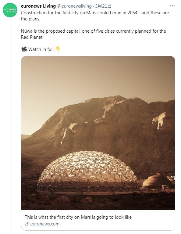 马斯克这番“改口风”是在另一家公司的2054年火星城市蓝图曝光之际作出的。就在日前,美国建筑工作室、太空创业公司ABIBOO透露的信息中公布了其火星殖民计划,以及其计划在2054年建成的五个城市之一(Nüwa,火星女娲之城)。这一消息让它抢走了SpaceX的风头。