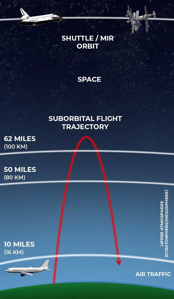 只不过,与贝佐斯的蓝色起源一样,维珍银河提供的也只是亚轨道飞行(有意思的是,蓝色起源认为,从严格意义上来讲,维珍银河的太空旅游算不上真正的亚轨道飞行,因为蓝色起源的飞行高度更高)。