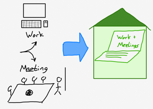 然而,这就是我要讨论 COVID 加速了物质世界贬值的原因:几十年来,工作一直是一个物理的目的地;现在它变成虚拟目的地了。虽然在过去,知识工作者的一天就是在一个人对着电脑工作以及参加面对面会议之间耗完的,但在过去两年的时间里,面对面的会议变成了议事日程邀请上的一个打开视频会议电话的链接。这就是我上面提到的物质世界的降级: