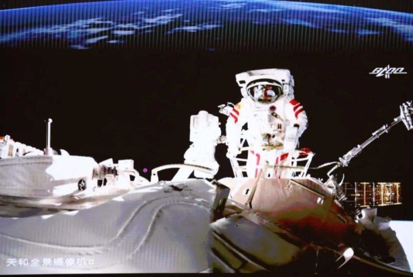 7月4日,空间站航天员首次出舱。出舱时,三名航天员中,一人在舱内操控机械臂,两人完成出舱。