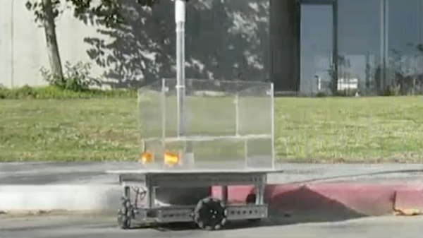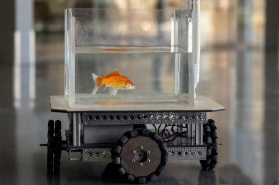 在这个实验中,这个团队设计并制造了一个鱼操作的交通工具Fish Operated Vehicle,简称为FOV。这辆金鱼车包括一个水箱、四个机动轮子、一台电脑、一台跟踪运动的摄像机和用来识别车辆位置的激光雷达(该团队已经为那些想要建造自己的FOV的人提供了说明)。金鱼车最快能以每小时0.93英里(1.5公里)的速度移动。