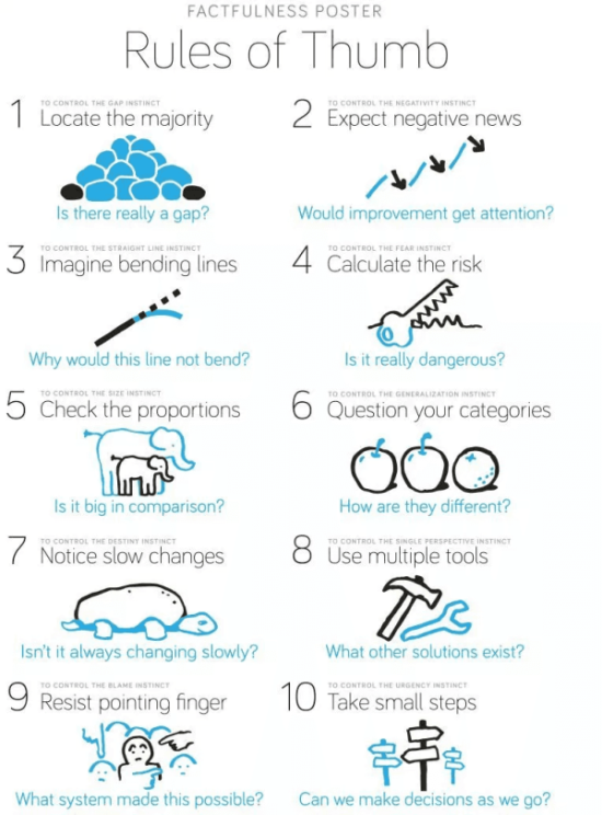 在解释我们存在的一些偏见方面,汉斯·罗斯林(Hans Rosling) 、欧拉·罗斯林(Ola Rosling) 、安娜·罗斯林·罗朗德( Anna Rosling Rönnlund)合著的《事实-用数据化思考,避免情绪决策》(Factfulness)就做得非常出色,书里面还提供了降低偏见影响的方法。