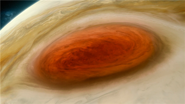 当“朱诺号”在大红斑上翱翔时,它看到的是一场直径超过一万六千公里的风暴。