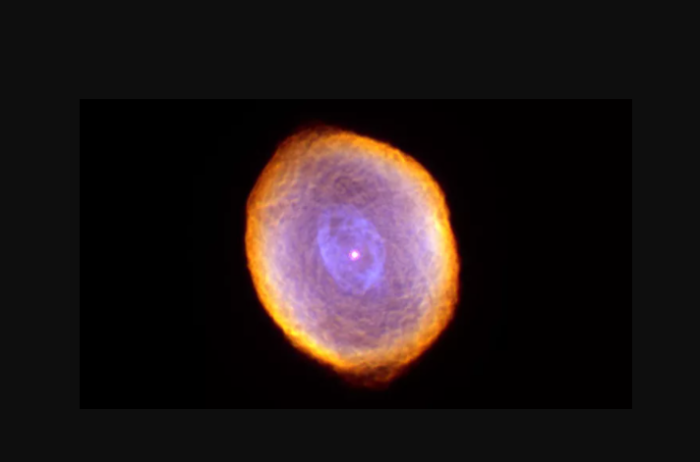 这颗“宇宙宝石”是行星状星云IC 418,也被称为螺线图星云。螺线图星云位于距离地球约2000光年的天兔座,在其紫色和橙色的辉光中显示出一些奇特的纹理。哈勃科学小组于2000年9月发布了这张星云的照片。