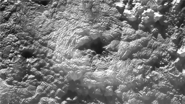 其中最让科学家困惑的是冥王星表面上有一些巨大土丘。每个土丘的顶部都有一个很深的洼地。这些土丘看起来就像年轻的火山。