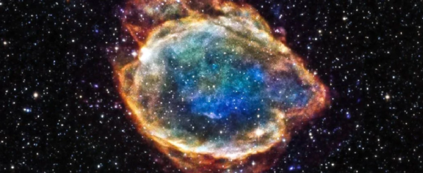 [译者注:Ia型超新星的形成需要一个双星系统,一个是巨星,一个是白矮星。质量极大的白矮星吸取巨星的物质(主要是氢),当达到1.44个太阳质量时,会发生碳爆轰,核爆炸后没有遗留产物。]