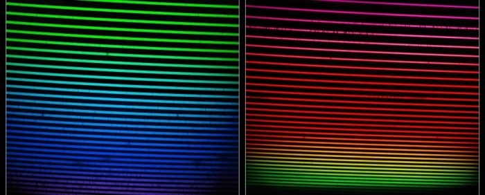 这其实是一颗恒星,是双子座南望远镜最新仪器——双子座高分辨率光学光谱仪(简称GHOST)捕捉到的第一张光线图像。它展示的是一颗编号为“HD 222925”的恒星发出的全部光谱,拥有极高的分辨率。
