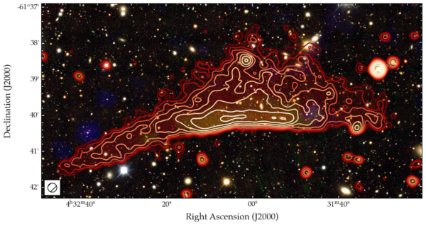 无线电遗迹在图片底部附近以红色显示。我们这里的数据揭示了在遗迹中从未见过的特殊特征。