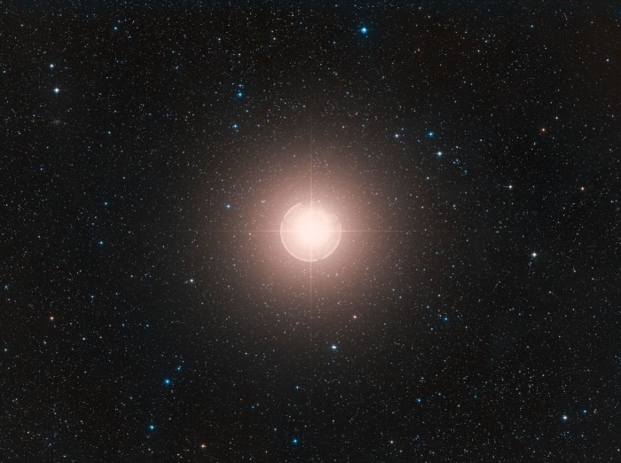 * 参宿四在宇宙中的图像,这颗恒星在生命接近尾声时正在脱落质量(图片来源:ESO/数字化巡天2号)