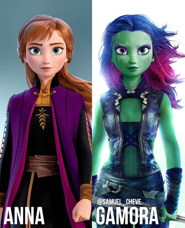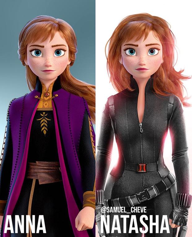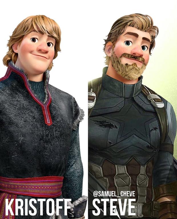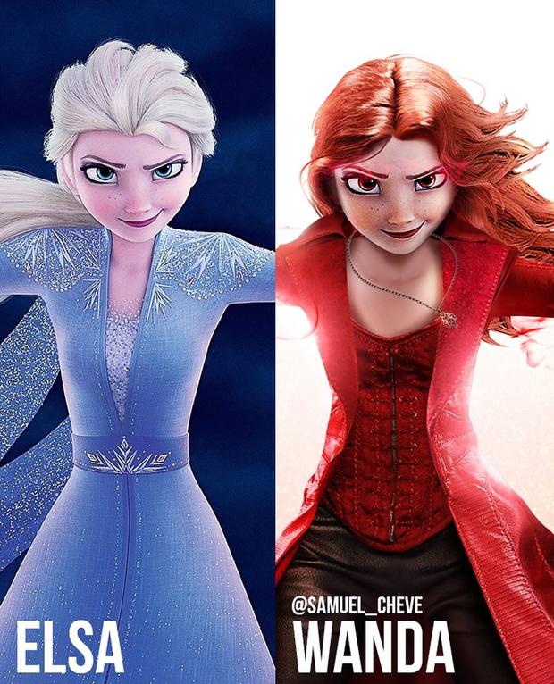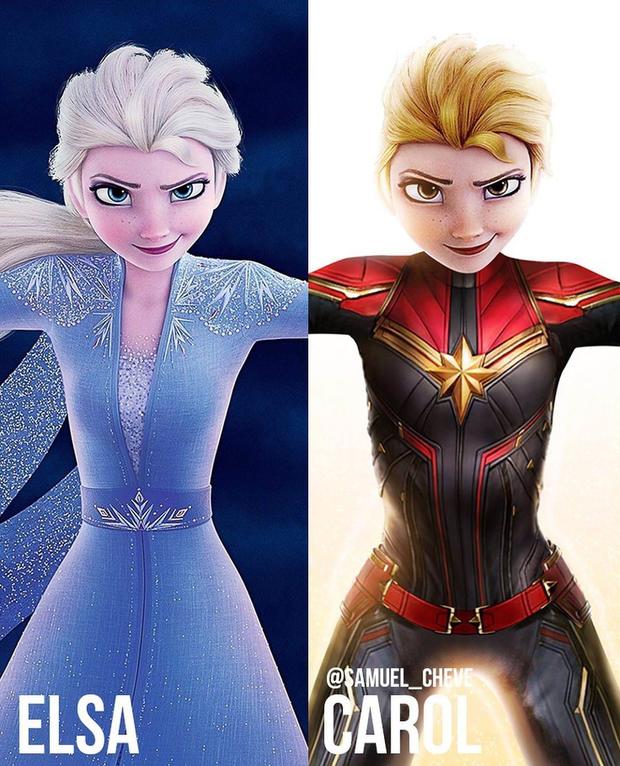 时光网讯 法国网友Samuel Chevé近日在社交媒体上传了一组创作,他把迪士尼动画角色都画成漫威超级英雄的样子,譬如《冰雪奇缘》的艾莎女王变成惊奇队长、黑寡妇,安娜则“化身”卡魔拉,克斯托夫变成美国队长;《魔发奇缘》里的弗林则变成钢铁侠。