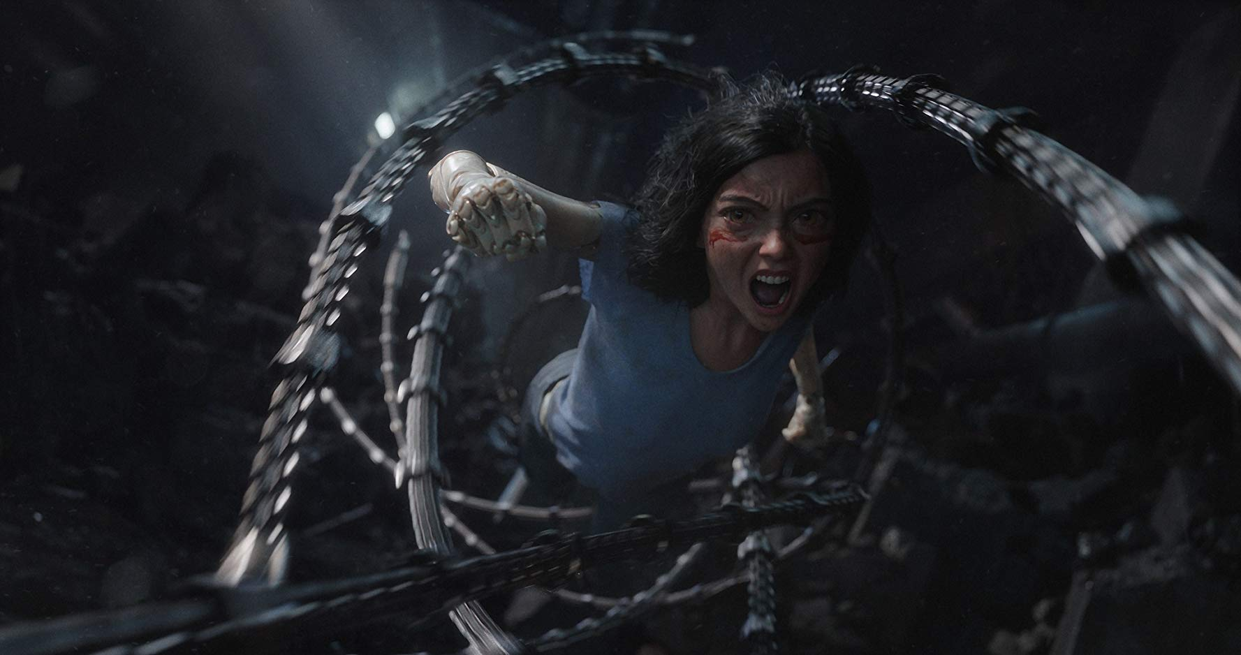 《阿丽塔:战斗天使》中精彩的动作戏和外型极近夸张的改造人都融入了导演罗德里格兹独有的暴力美学风格。女主阿丽塔虽然失忆,但在一次次的战斗中逐渐觉醒,失落了三百多年的高科技格斗技术——机甲术也渐渐拨开了神秘的面纱。机甲术结合了空手道、咏春等多种功夫流派,能够让使用者在瞬间爆发出强大的能量,迅猛凌冽,势不可挡。流畅的动作设计、逼真的视效、丰富各样的打斗场景,风格各异、场场惊艳,颇有经典功夫片的神韵。