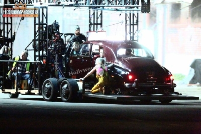 1905电影网讯 DC新片《猛禽小队》发布最新片场照,小丑女和伊万·麦克格雷格上演追车戏。片场照中,小丑女身穿滑轮鞋,徘徊在汽车的尾部和侧身,一身靓装十分吸睛。