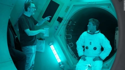 △皮特在影片杀青后,连线采访正在空间站执行任务的NASA航天员Nick Hague