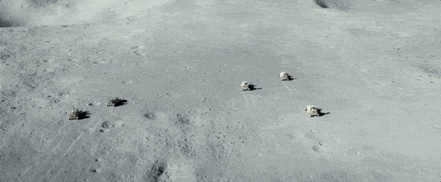 月球强盗埋伏在尘土中,伺机飞车劫持财物;