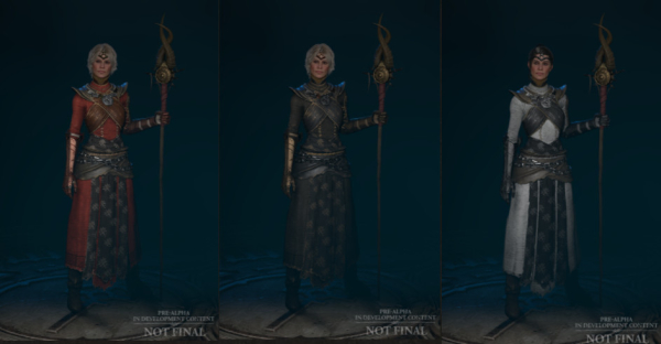 《暗黑破坏神4》的每一副防具套装都有两种身体类型。下面这张图片是野蛮人的防具套装,但是两者之间有些微的不同之处。