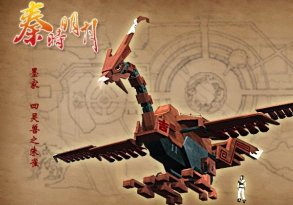 故事中的墨家,拥有以古代四神兽命名的四种机关兽,分别是青龙、白虎、朱雀和玄武。青龙是一架带有喷火机关,能够抵挡秦国虎贲营的战争机器;白虎则拥有铜皮铁甲,是墨家机关城的守护者;朱雀是最早出现的,类似“古代飞机”定位的运输神器;玄武则潜伏在机关城水底,通过水力运转机关城的齿轮传动结构。