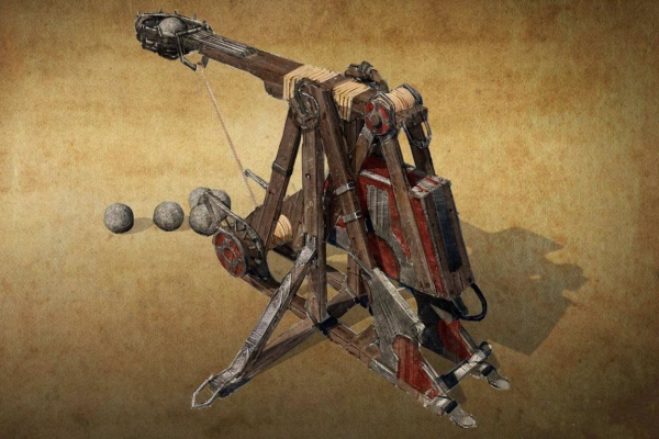 转射机则是弓箭手的强化升级版本,需要两人配合使用。一人主要负责射箭并微调方向,一人主要负责旋转基座,辅助射箭者移动攻击范围。这种需要合作使用的器械,无论是效率还是强度,都要远高于两个弓箭手站在城墙上拉弓。