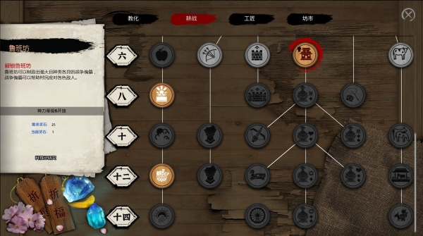 建筑名“鲁班坊”的由来,显然是在致敬春秋时期,那位被尊称为“工匠之祖”的鲁班。而更加细节的一点是,当“鲁班坊”分支之下的科技树被玩家点至最高级,解锁的科技名为“脚踏水车”。