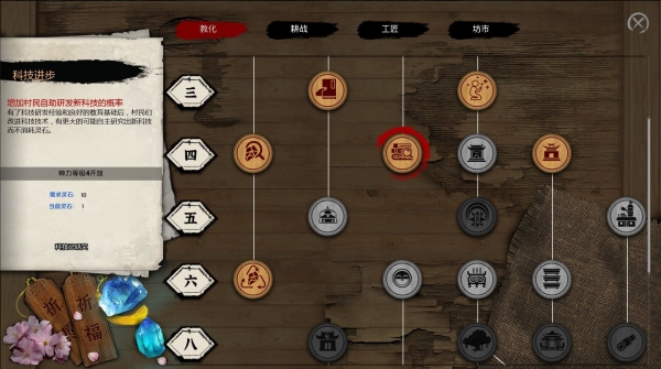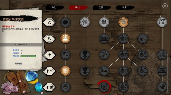 事实上,抛开无法“玩”的动画不说,比起重叙事的“轩辕剑”,“古代机关术”的巧思,其实有更能够大展拳脚的游戏类型——以“研究科技”等养成玩法为主的模拟经营游戏。