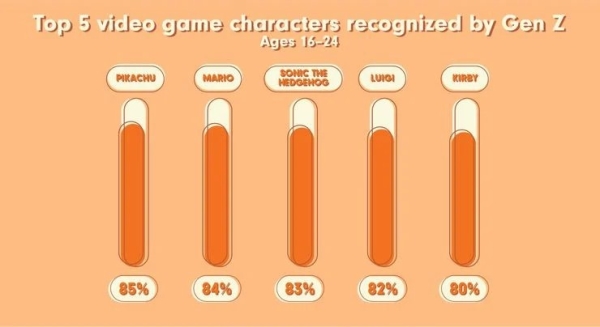 根据GetCenturyLink的数据,Z世代比任何其他年龄段的人——甚至是千禧一代(指出生于20世纪时未成年,在跨入21世纪后成年一代人)——都更喜欢游戏!他们对这一媒体的喜爱程度如此之高,以至于26%的该群体表示电子游戏是他们最主要的娱乐活动,87%的人表示他们每天或每周都玩游戏,10%的人表示他们在线观看流媒体电影或电视节目。这促使团队想要找出哪些电子游戏角色给年轻一代留下了更深刻的印象,以及与过去和现在的文化偶像相比,它们有多么令人难忘。