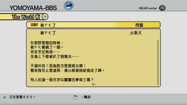 但如果这些软件只是纯粹地输出信息,很容易变成玩家不感兴趣的大文本,没有任何游戏性可言,所以《骇客时空:最后的记录》还加入了论坛回复、与角色互相收发邮件等互动功能,给玩家带来反馈感,让玩家能更加积极地在其中寻找与“The World”相关的信息,从而形成了“退出游戏-处理邮件-逛论坛-进入游戏-退出游戏”这么一个循环操作。