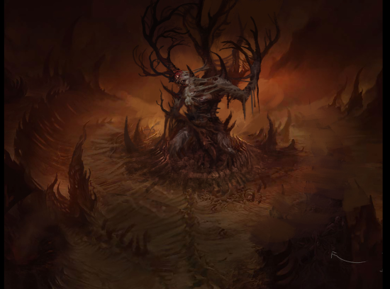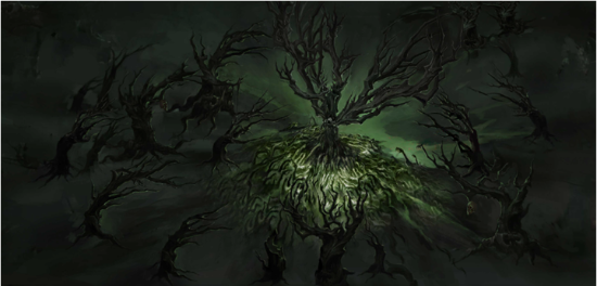 首先,你必须在恐怖骇人的悲惨森林里面杀出一条血路。森与瘤爪牙这个黑暗沼泽居住着恶魔生物,它们因为没能完成司卡恩交办的任务,因此身体被融合进这个国度成为其中的一部分,以此作为它们的惩罚。