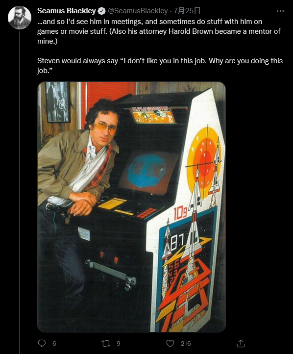 斯皮尔伯格是CAA的客户,偶尔会与布莱克利合作开展项目。 “我会在会议上见到他,有时会在游戏或电影方面与他一起做一些事情,”布莱克利回忆道:“史蒂文总是说,‘我不喜欢你的这份工作。你为什么要做这份工作。'”