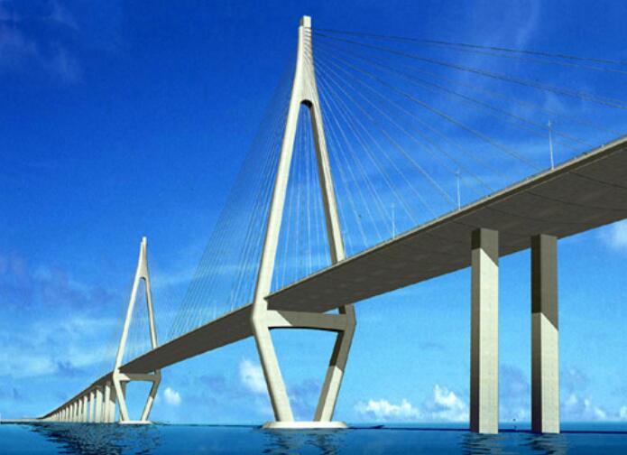 斜拉桥的结构和吊桥有些相似。区别在于,它们支撑重量的方式不同。斜拉桥的斜拉索和桥塔相连,由桥塔承重。